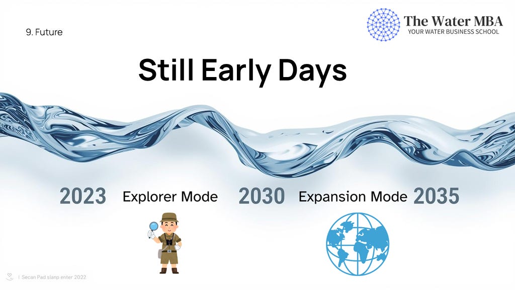 By 2030, the aim is to achieve a substantial understanding of the water business, recognizing key visible and non-visible decision-makers and addressing their needs.