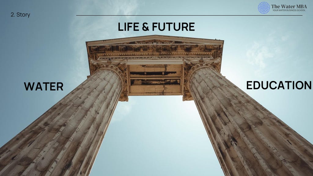 The foundation of the Water MBA rests on the belief that water and education are two fundamental pillars; removing either diminishes the prospects for life and the future.