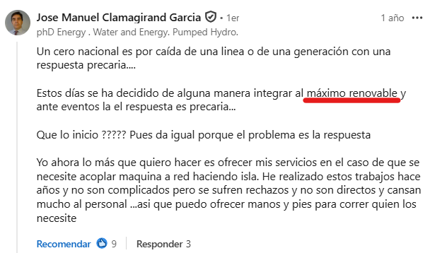 It was in Spanish, but interestingly, within just a few minutes, José Manuel already had a very clear idea of the origin of the blackout, while the media and political discussion took weeks of “we need to investigate” and “we are looking into it”.