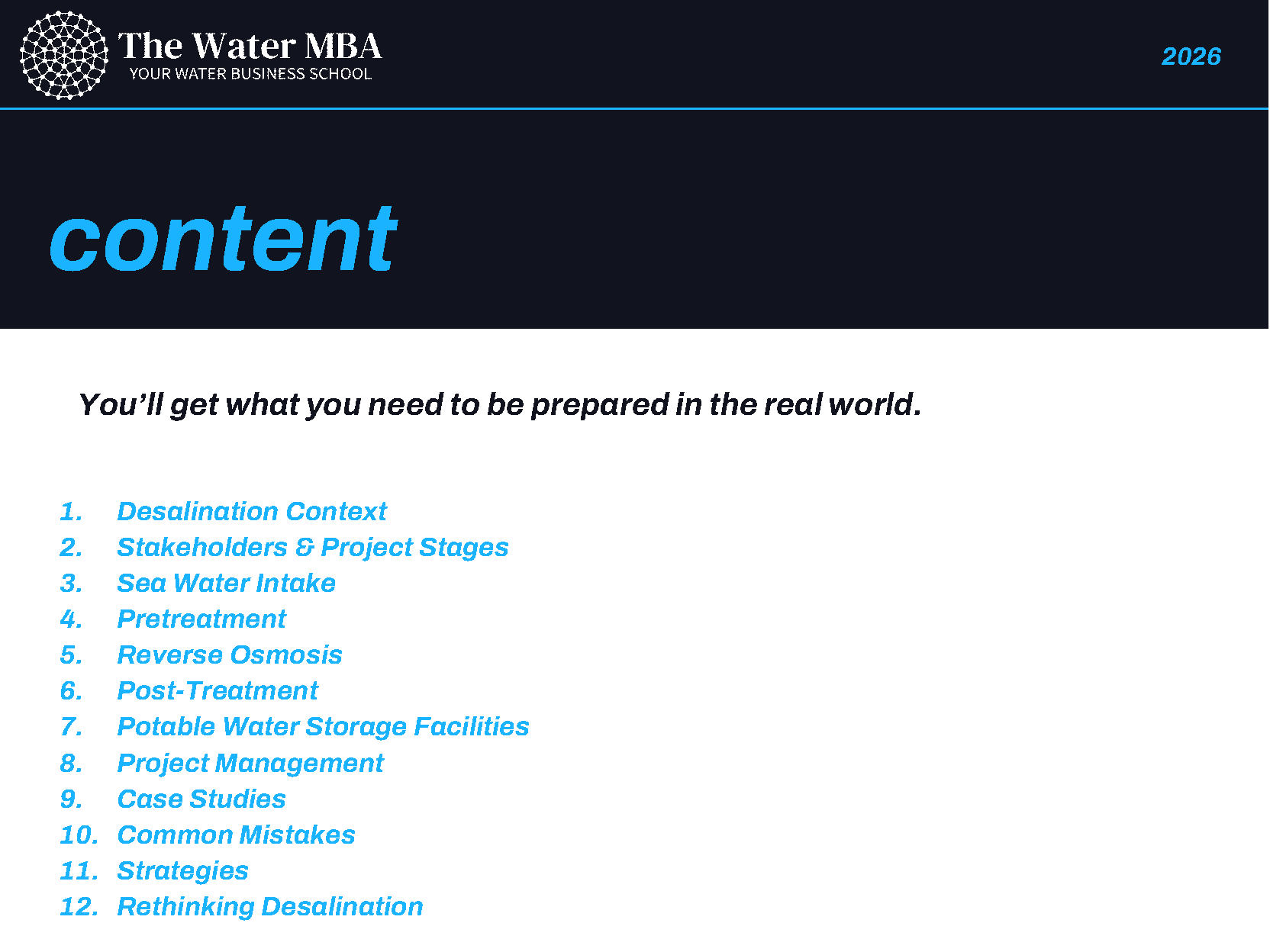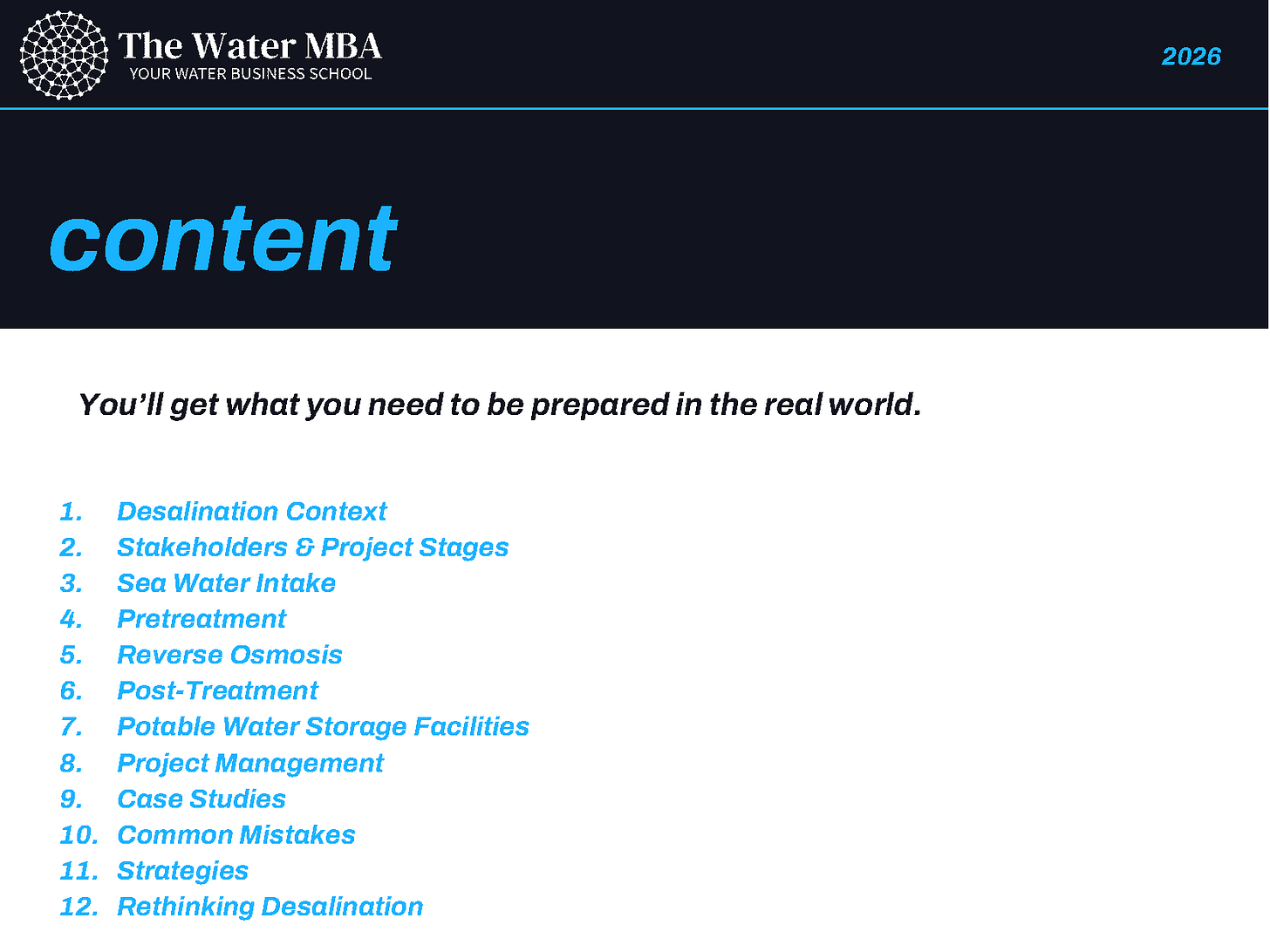 On Tuesday, I’ll officially announce the Register of Interest for joining our Desalination MBA course, a Video On Demand journey into the world of desalination, not from a purely academic perspective, but from the practical one that is essential to understand real-world challenges and solutions.