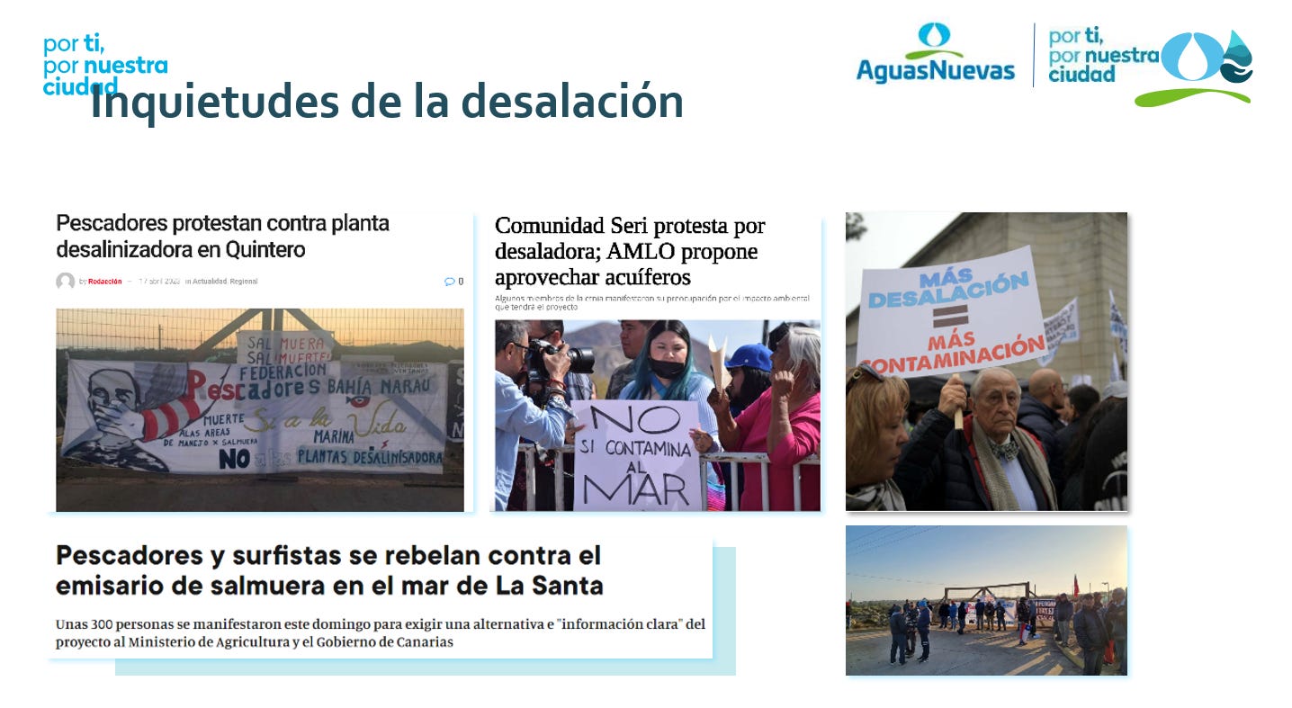 Antofagasta Region is a leader, where desalination plants supply 100% of the potable water for the population.